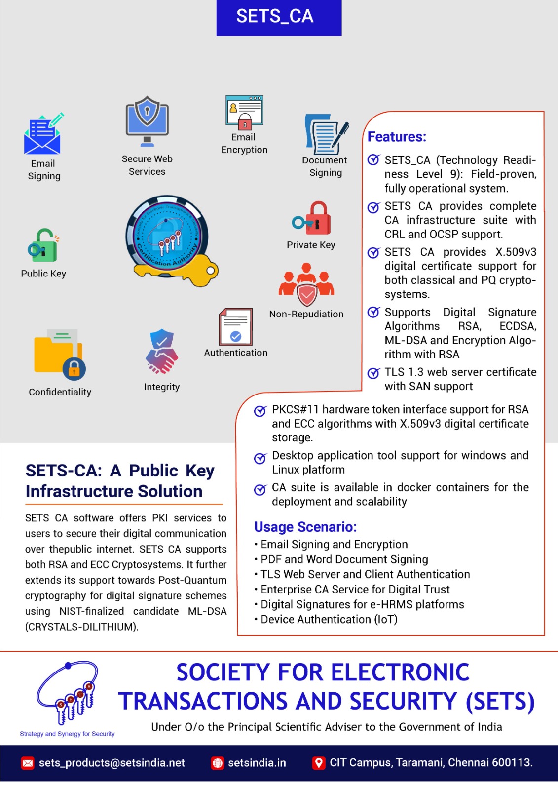 SETS-CA: A Public Key Infrastructure Solution